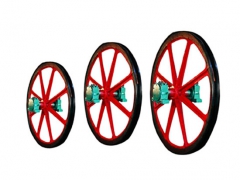 立井天轮是安装在井架上,起支撑作用的天轮;供矿井提升时支拖提升机卷筒到提升容器之间,以引导钢丝绳转向。绳槽带塑衬或胶块,可以增加钢丝绳的使用寿命;主要用于立井提升及斜井箕提升。立井天轮和凿井天轮的轮体只作旋转运动。Zmjt055