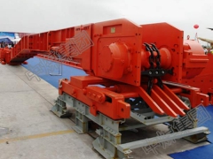 顺槽用刮板转载机在工作时,一端与工作面的输送机搭接,一端与带式输送机的机尾相连。它在大型综采工艺的三机配套中的作用,是把在采掘面上由刮板机运出的煤炭,由巷道底板升高后,转送到带式输送机上。使用转载机后,可以避免顺槽皮带机的频繁移动,从而保证工作循环的正常进行。